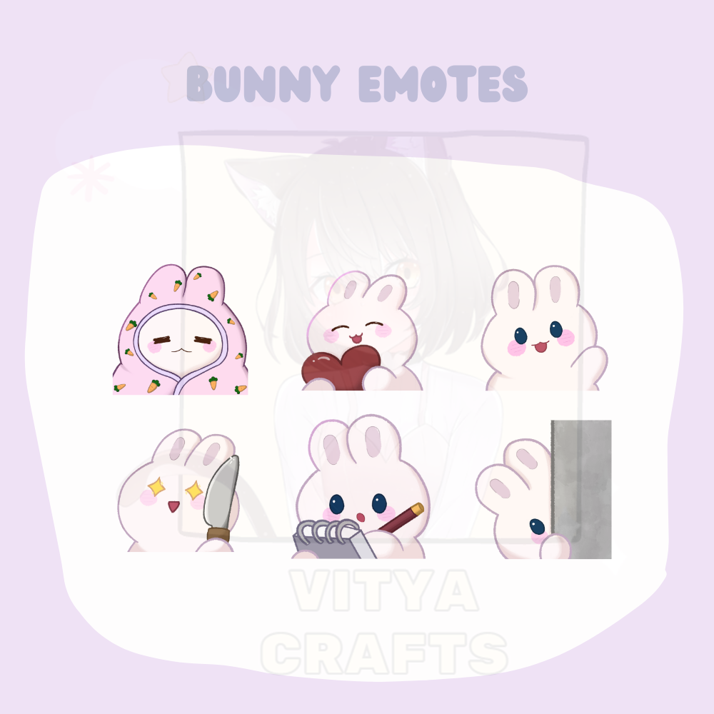 Enhance your online community with these delightful bunny-themed emotes! Perfect for Twitch streamers and Discord servers, this set of charming and expressive emotes will bring joy and personality to your chats.